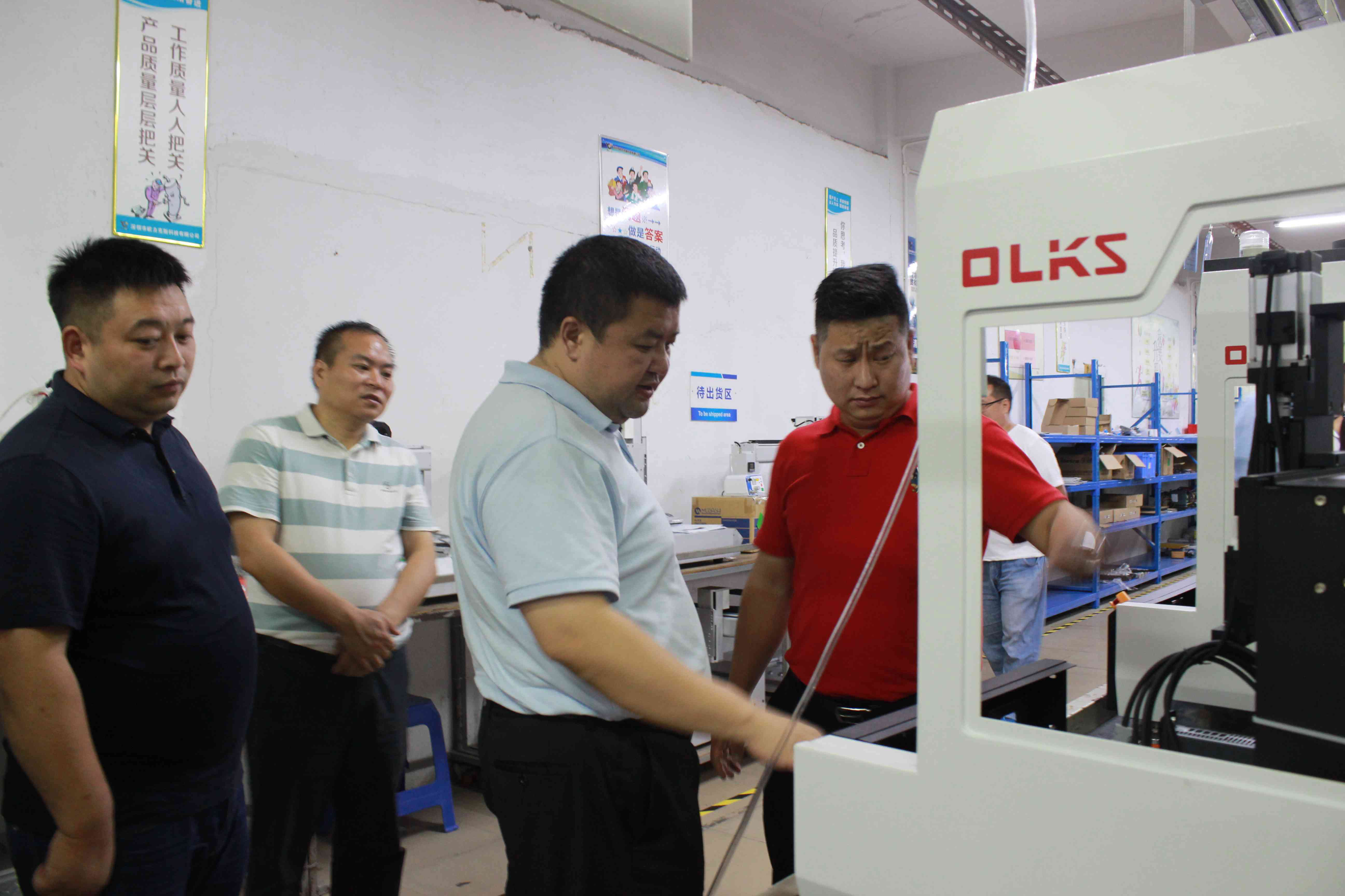 期間,歐力克斯總裁姚利陪同昌江區(qū)委副書記、區(qū)長伊文斌一行參觀公司展廳、實驗室、技術(shù)研發(fā)中心、生產(chǎn)中心等。觀看了高端智能點膠機的打樣測試過程,了解了生產(chǎn)流程和銷售市場。