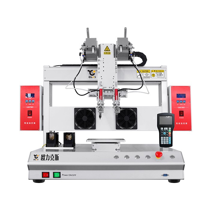 歐力克斯桌面式三軸焊錫機(jī)器人適用于汽車電子,數(shù)碼,電子,電聲,LCD,線路板等生產(chǎn)行業(yè),連接器、RJ/網(wǎng)絡(luò)變壓器、排線、FPCB拉焊、COF拉焊、電腦主板、CABLE、喇叭和馬達(dá)等高質(zhì)量焊錫。