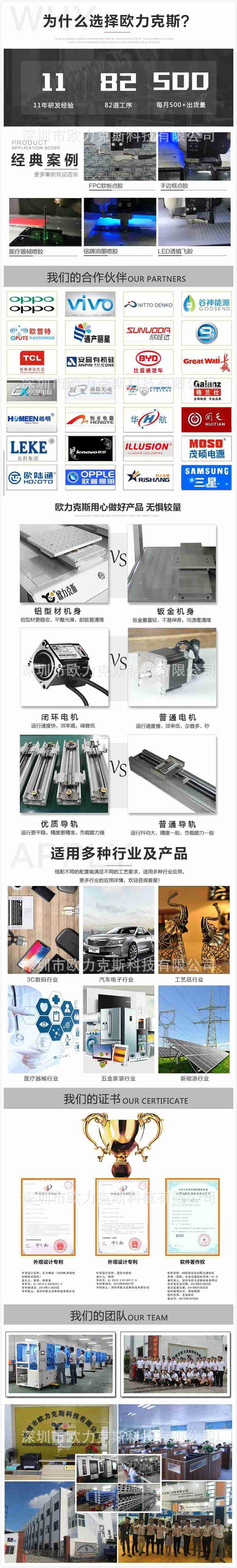 深圳市歐力克斯科技有限公司成立于2011年,是一家擁有自主品牌的精密點(diǎn)膠機(jī)設(shè)備專業(yè)智造商,為深圳市技術(shù)創(chuàng)新企業(yè)和國(guó)家高新技術(shù)企業(yè)。歐力克斯施行集團(tuán)化管理,除位于深圳市寶安區(qū)的總部之外,還擁有華東分公司、西南分公司、香港分公司、江蘇辦事處、寧波辦事處、成都辦事處等子公司和分支機(jī)構(gòu)。歐力克斯通過了ISO9001:2015質(zhì)量體系認(rèn)證,擁有自主知識(shí)產(chǎn)權(quán)專利29項(xiàng),專注于自動(dòng)點(diǎn)膠機(jī)、噴射式點(diǎn)膠機(jī)、在線式點(diǎn)膠機(jī)、自動(dòng)焊錫機(jī)、自動(dòng)灌膠機(jī)、噴射閥等流體控制設(shè)備及智能制造自動(dòng)化的研發(fā)、生產(chǎn)、銷售及為客戶提供解決點(diǎn)膠技術(shù)方案等配套服務(wù)。OLKS自動(dòng)化設(shè)備主要應(yīng)用于高端制造業(yè)中的IC芯片封裝、點(diǎn)膠密封、粘接、表面涂覆、定點(diǎn)灌封、高精密非接觸噴射底部填充點(diǎn)膠等組裝作業(yè),行業(yè)遍及手機(jī)組裝、3C數(shù)碼、SMT/EMS、家電、LED照明、新能源、汽車電子、軍工、半導(dǎo)體、醫(yī)療器械等。深圳市歐力克斯科技有限公司始終牢記“利他思維”,秉持“匠心精神”,擁有強(qiáng)大技術(shù)專家團(tuán)隊(duì)和精英化銷售團(tuán)隊(duì)為客戶提供“星級(jí)服務(wù)”創(chuàng)造更大價(jià)值,助力中國(guó)制造2025!
