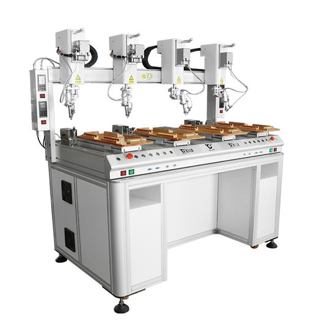 4、落地式四頭焊錫機(jī)多軸聯(lián)動機(jī)械手,全部采用精密步進(jìn)馬達(dá)驅(qū)動及先進(jìn)運動控制算法,有效提升運動定位精度和重復(fù)精度。